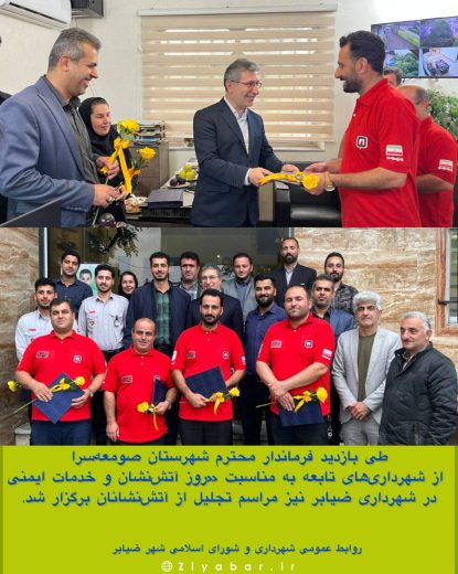 طی بازدید فرماندار محترم شهرستان صومعهسرا از شهرداریهای تابعه به مناسبت «روز آتشنشان و خدمات ایمنی»، امروز نیز ایشان به همراه هیئت همراه، بخشدار محترم آقای رحمتی، ریاست محترم شورای اسلامی شهر ضیابر جناب آقای نوروزی، عضو شورای شهر آقای ایوب رضایی و سرپرست شهرداری ضیابر سرکار خانم حاتم جعفری با حضور در شهرداری ضیابر، از زحمات شبانهروزی و بیادعای آتشنشانان پرتلاش این شهر تقدیر و قدردانی بهعمل آوردند.