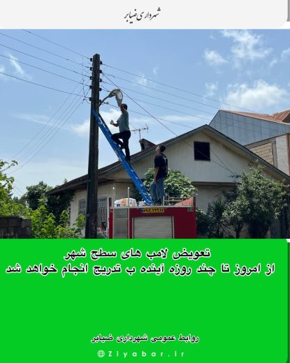تعويض لامپ هاى سطح شهرشهرداری ضیابر۷ تیر ۱۴۰۴روابط عمومی شهرداری ضیابر تعويض لامپ هاى سطح شهر از امروز تا چند روزه آينده ب تدريج انجام خواهد شد.روابط عمومی شهرداری ضیابر Tags# تعويض لامپ هاى سطح شهر# شهرداری ضیابر# شورای اسلامی ضیابر به اشتراک بگذارید روابط عمومی شهرداری ضیابر مقالات: 228 نوشته قبلی حاشیه زنی و هرس علف های هرز نوشته بعدی فضا سازى حد فاصل ميدان حلوا تا ميدان مادر جهت توسعه فضاى سبز پاسخ دهیدلغو پاسخنشانی ایمیل شما منتشر نخواهد شد. بخشهای موردنیاز علامتگذاری شدهاند * نام * پست الکترونیک * سایت اینترنتی اضافه کردن نظر * برای دفعه بعد که نظر می دهم نام، ایمیل و وب سایت من را در این مرورگر ذخیره کنید.فرستادن دیدگاه