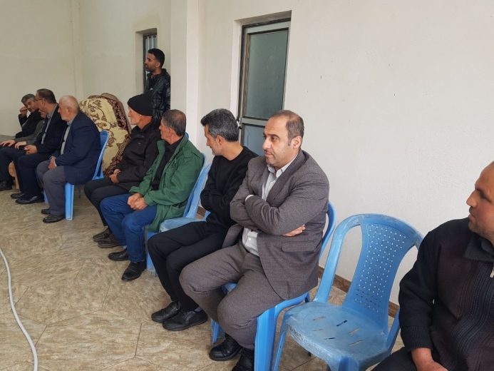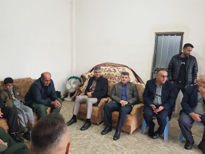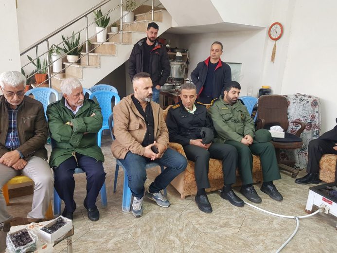 حضور توفیقی سرپرست بخشداری، جبار زاده شهردار، حاجت زاده ریاست اداره آب و فاضلاب شهر ضیابر در منزل پدری شهید پویا رحمت طلب ضیابری