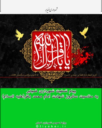 شهرداری ضیابر، ضمن عرض تسلیت این ضایعه جان‌گداز به محضر حضرت ولی‌عصر (عجل‌الله تعالی فرجه الشریف)، رهبر معظم انقلاب اسلامی (مدظله‌العالی) و عموم شیعیان و محبان اهل بیت عصمت و طهارت (علیهم‌السلام)، از درگاه خداوند متعال مسئلت دارد ما را در پیمودن راه آن امام بزرگوار، در مسیر خدمت، معرفت و تعهد، ثابت‌قدم بدارد.