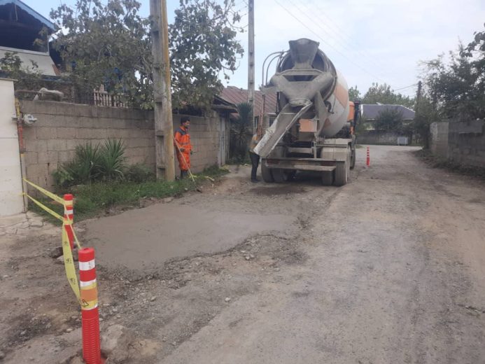 عملیات زیرسازی و بتن‌ریزی جهت اجرای آسفالت طی روز های آینده در انتهای خیابان فرهنگیان انجام شد،
